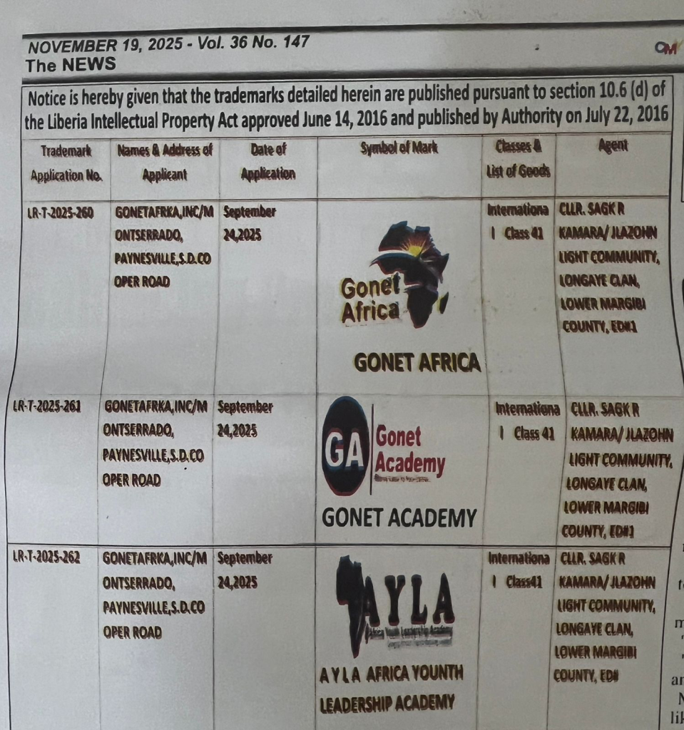 “This milestone is not just a legal accomplishment; it is a testament to the vision, hard work, and integrity that have guided GonetAfrica since 2021. As we continue to expand our impact, this trademark protection strengthens our identity, promotes trust, and reinforces our commitment to excellence across Liberia and beyond.”
